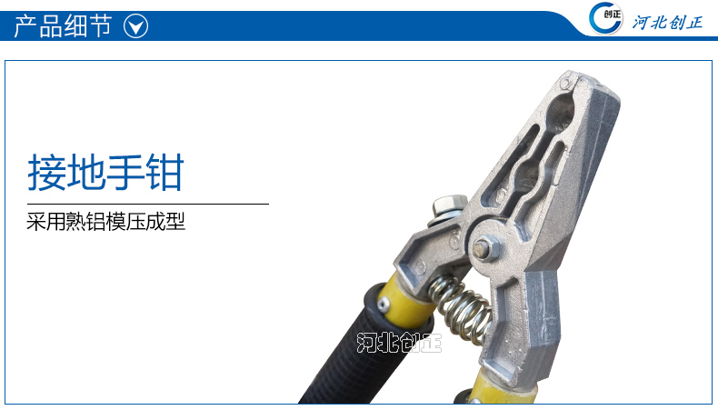 6、產(chǎn)品配置:軟銅線長(zhǎng)度及截面積可根據(jù)實(shí)際定制,接地端線夾可調(diào)換為鉗口接電夾。