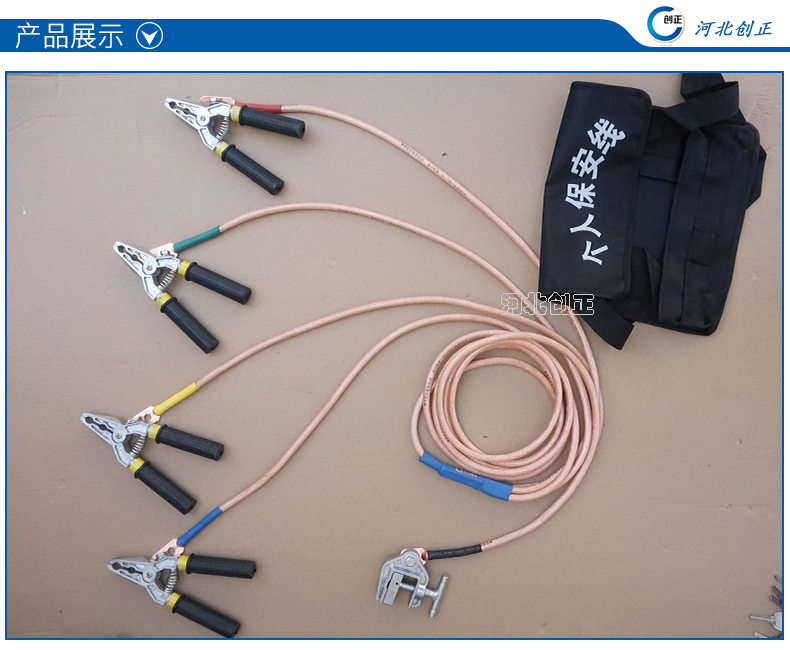 5、產(chǎn)品介紹:個(gè)人保安線由保安鉗或接地操作棒、跨接短路線、接地尾線、接線鼻(接線端子)、匯流管、接地端線夾或接地針等組成。