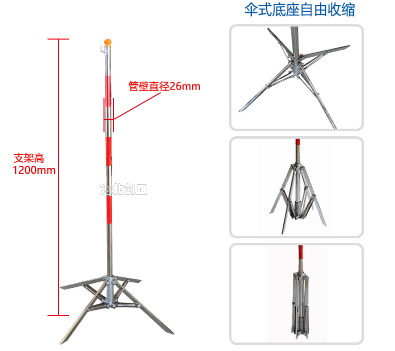 產(chǎn)品特點(diǎn):不銹鋼管制成,紅白相間,下面為傘式支撐;