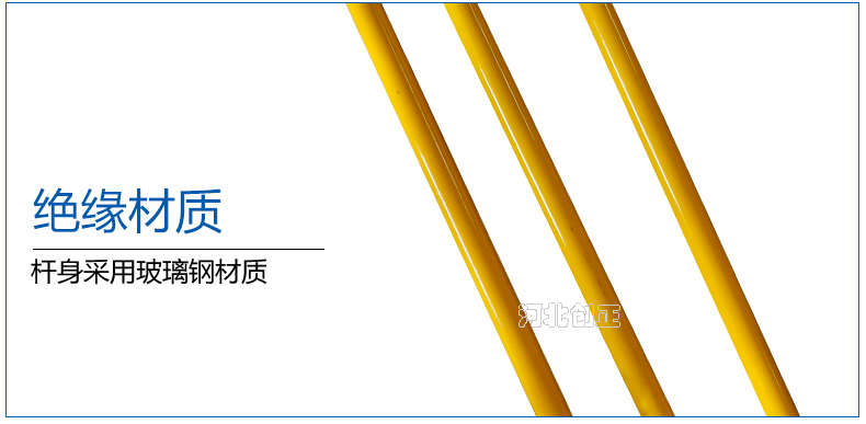 1、絕緣桿:采用絕緣性能及機(jī)械強(qiáng)度強(qiáng)、重量輕、經(jīng)防潮處理的環(huán)氧樹脂管制成。