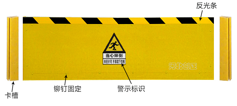 玻璃鋼絕緣擋鼠板采用玻璃鋼板材制做。擋鼠板上部貼黃黑相間反光條,反光條為反光膜加背膠紙制作。